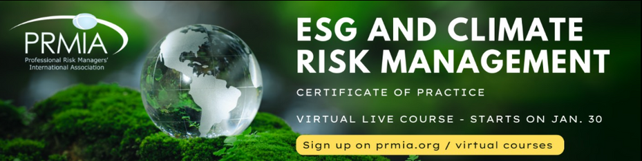 I developed and deliver PRMIAโs ESG & CLIMATE RISK Certification program consisting of 3 half days live content sessions followed by individual assignments, their review and presentation.
